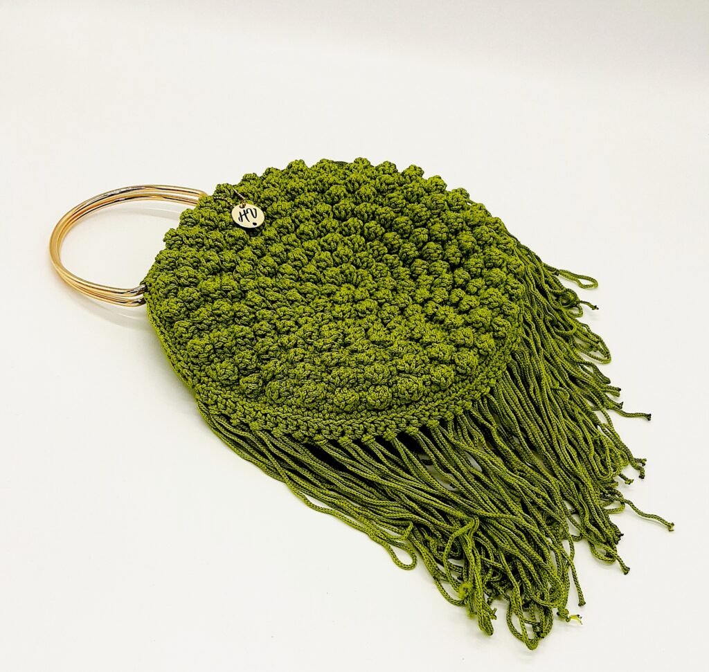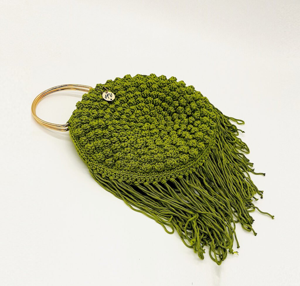 Χειροποίητη καθημερινή στρογγυλή τσάντα με κρόσσια