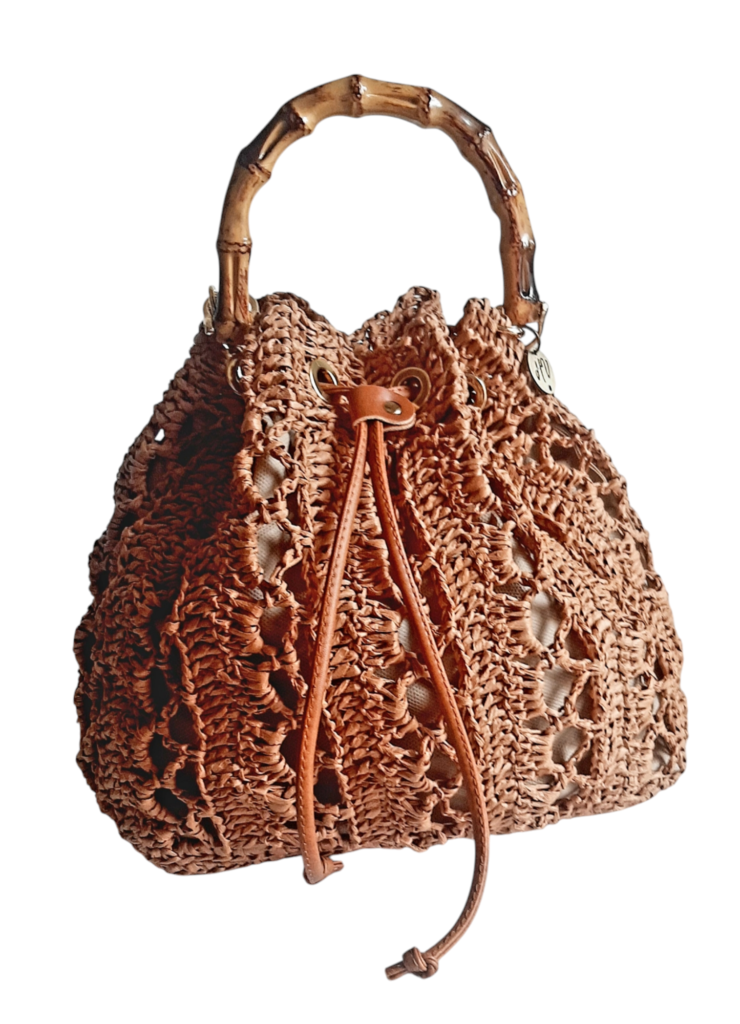 Χειροποίητο ψάθινο τσαντάκι – πουγκί με bamboo χερούλι
